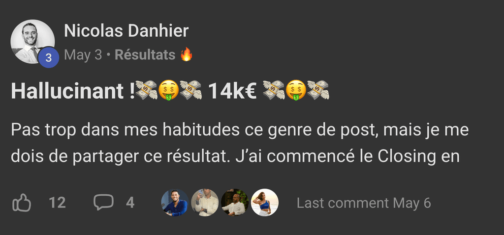 Après plusieurs années dans le closing indépendant et plus de 10M€ générés avec leurs équipes, ils ont construit un modèle simple : ne travailler qu’avec des anciens commerciaux et les repositionner dans le closing avec un niveau de posture, d’exigence et de professionnalisation nettement supérieur au marché.
